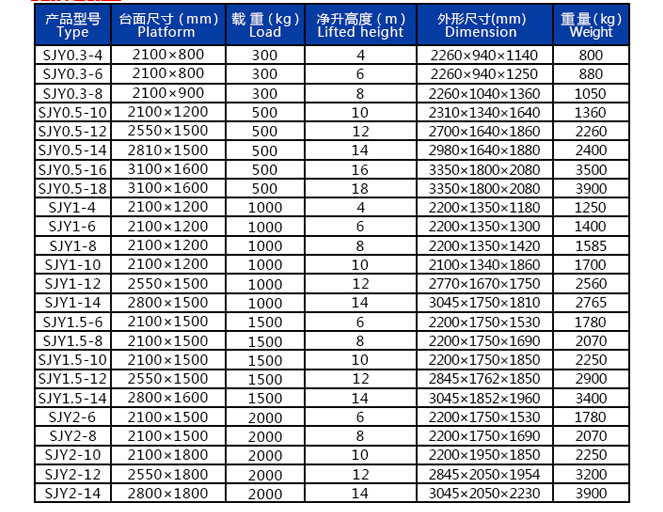 移动剪叉式升降平台常规产品升高高度4-20米,载重500-1500kg都有现货长期供应! 如常规产品达不到您的使用要求,也可以选择非标定制,我方可派技术人员到现场进行勘察测量,为您提供更适合需求的升降设备。