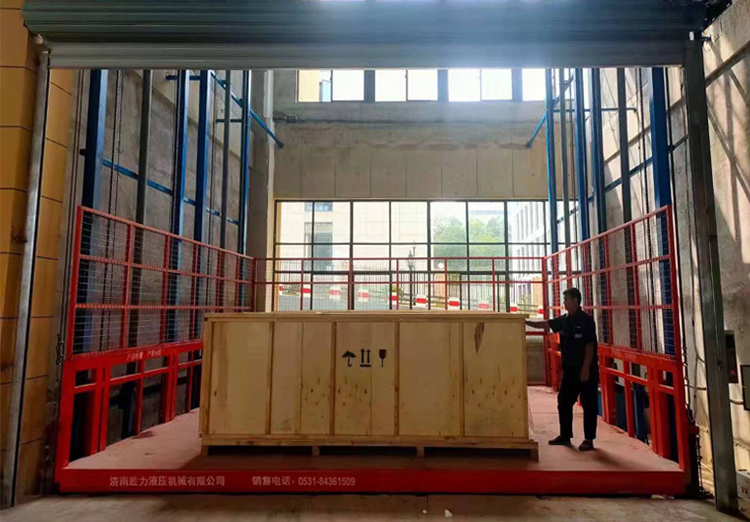 液压货梯的安装简单方便,不受现场空间的限制,无需机井房和井道,地坑只需20公分或不做地坑,室内室外都可以安装。液压货梯的自高高度20公分左右,把平台放入20公分的地坑后,设备与地面平齐,方便叉车等搬运工具进入平台轻松装卸作业,大量减少劳动力,并且大大提高了装卸作业的工作效率。 安全性能: