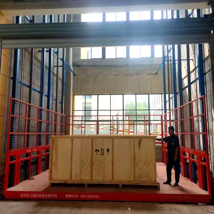 导轨式液压升降货梯适合于有二层及以上工业厂房、仓库、超市等多楼层间的货物传输。液压升降货梯的平台尺寸、提升高度,额定载重可以根据不同企业的使用需求定制生产,也可定制防爆型升降平台,防爆等级为ExdIIBT4。
